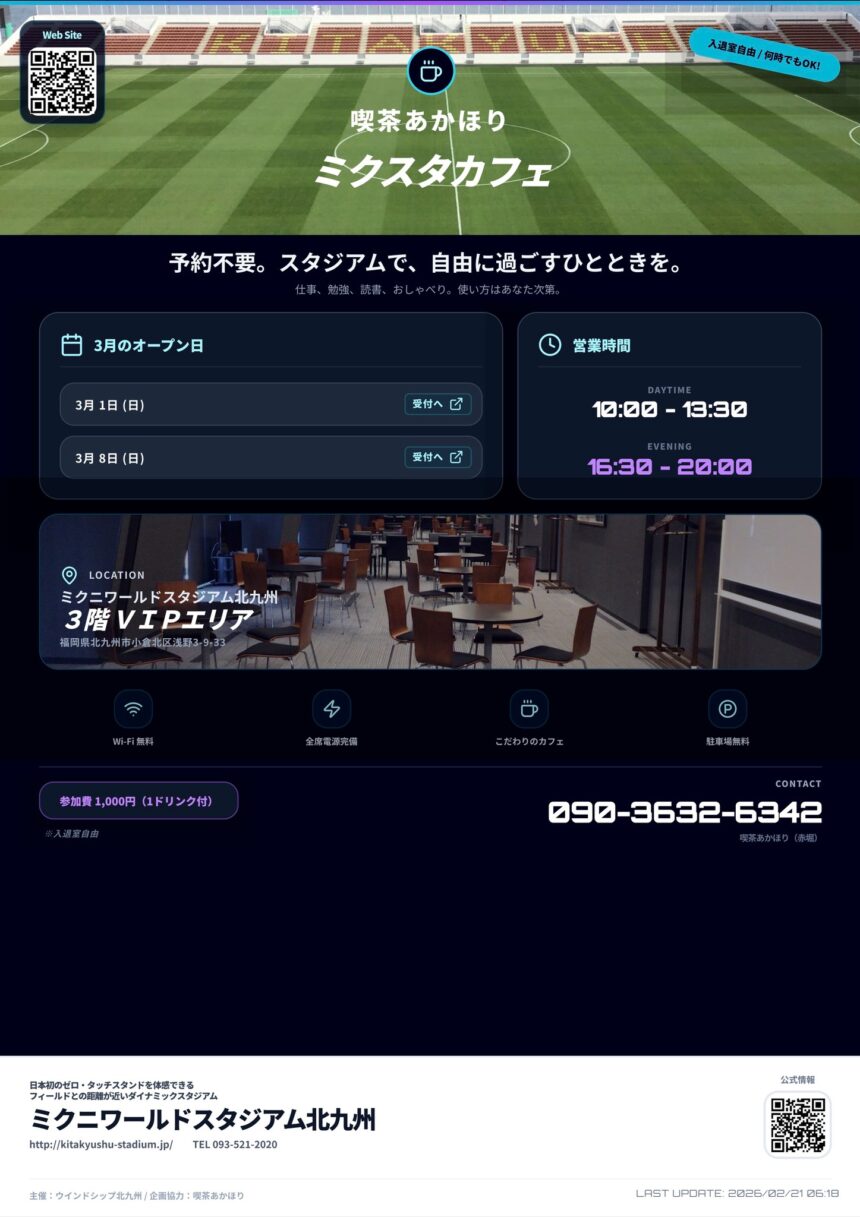 ミクスタ交流カフェ|2026年3月1日(日)・8日(日)開催|海を眺めるスタジアムコワーキング